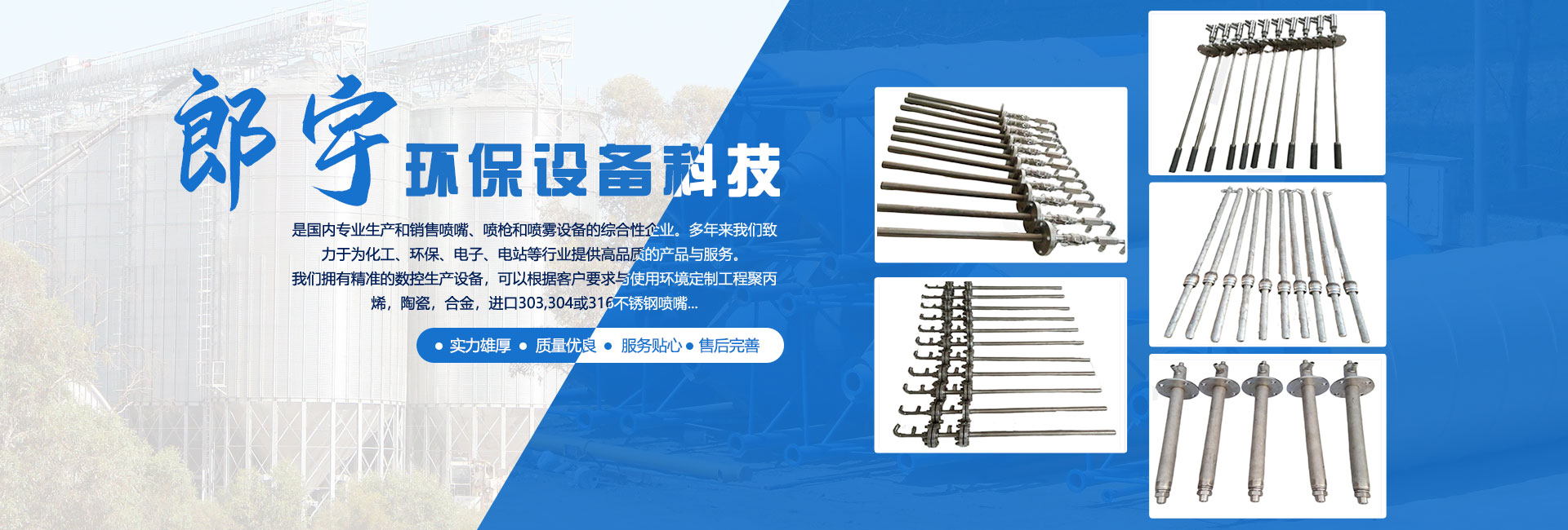 濟寧郎宇環(huán)保設備科技有限公司位于孔孟之鄉(xiāng),禮儀之邦的山東省濟寧市,是國內(nèi)專業(yè)生產(chǎn)和銷售噴嘴、噴槍和噴霧設備的綜合性企業(yè)。多年來我們致力于為化工、環(huán)保、電子、電站等行業(yè)提供高品質(zhì)的產(chǎn)品與服務。 我們擁有精準的數(shù)控生產(chǎn)設備,可以根據(jù)客戶要求與使用環(huán)境定制工程聚丙烯,陶瓷,合金,進口303,304或316不銹鋼噴嘴。 我們的經(jīng)營理念:誠信立企 以質(zhì)取勝 價格合理 我們的技術(shù)理念:精益求精 技術(shù)創(chuàng)新 追求品質(zhì) 我們的質(zhì)量方...