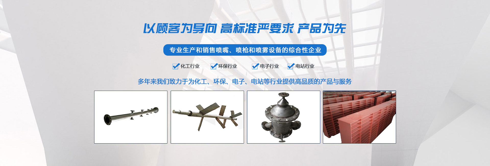 濟寧郎宇環(huán)保設備科技有限公司位于孔孟之鄉(xiāng),禮儀之邦的山東省濟寧市,是國內(nèi)專業(yè)生產(chǎn)和銷售噴嘴、噴槍和噴霧設備的綜合性企業(yè)。多年來我們致力于為化工、環(huán)保、電子、電站等行業(yè)提供高品質(zhì)的產(chǎn)品與服務。 我們擁有精準的數(shù)控生產(chǎn)設備,可以根據(jù)客戶要求與使用環(huán)境定制工程聚丙烯,陶瓷,合金,進口303,304或316不銹鋼噴嘴。 我們的經(jīng)營理念:誠信立企 以質(zhì)取勝 價格合理 我們的技術(shù)理念:精益求精 技術(shù)創(chuàng)新 追求品質(zhì)